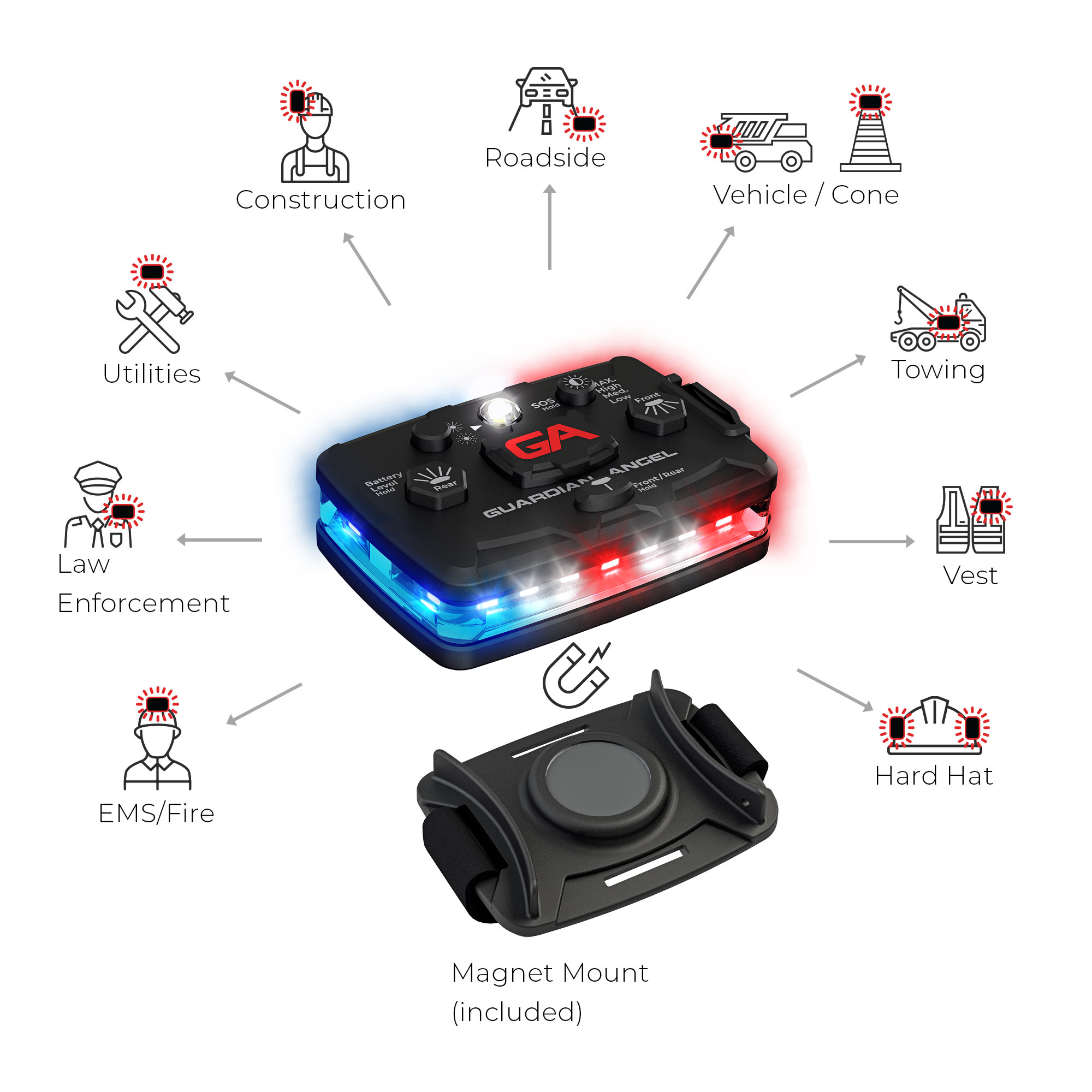 - Patented built-in Magnet Mounting System works with ALL Guardian Angel mounts