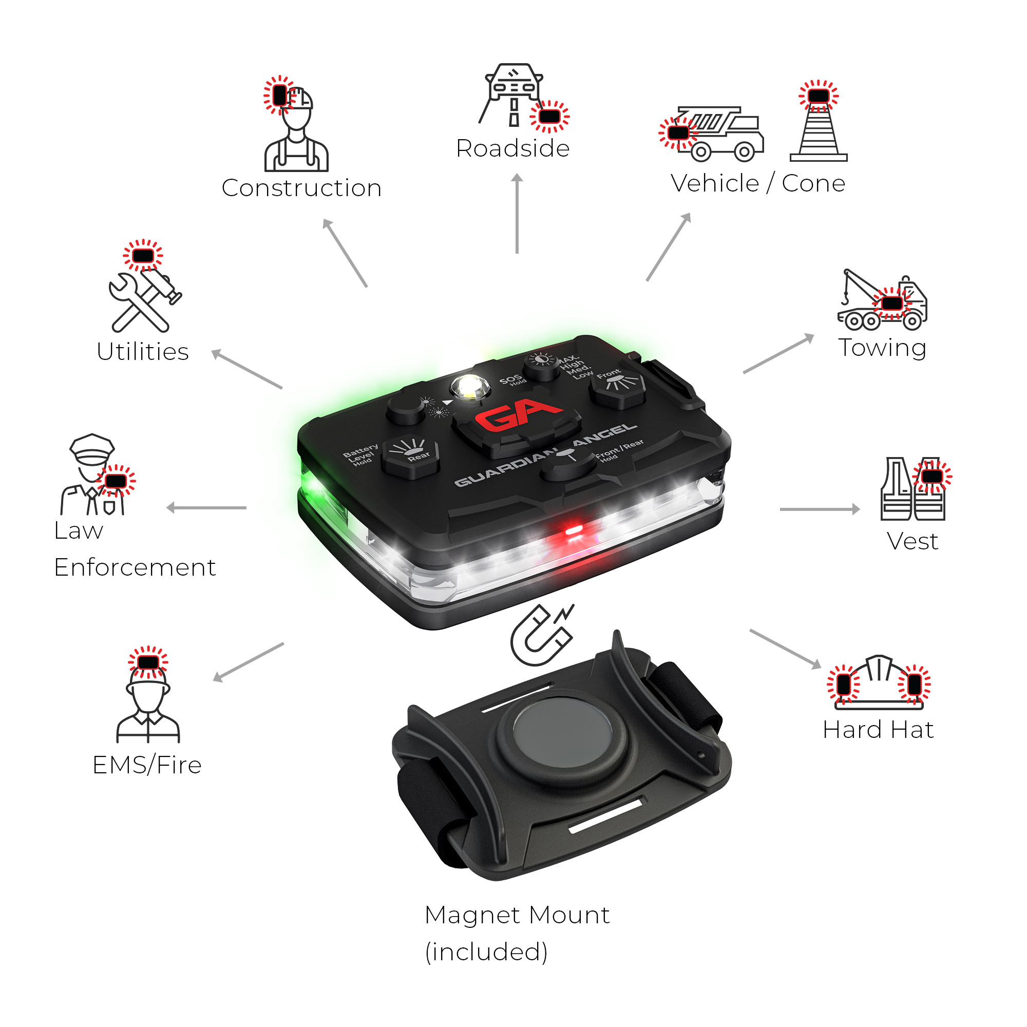 • Patented built-in Magnet Mounting System works with ALL Guardian Angel mounts