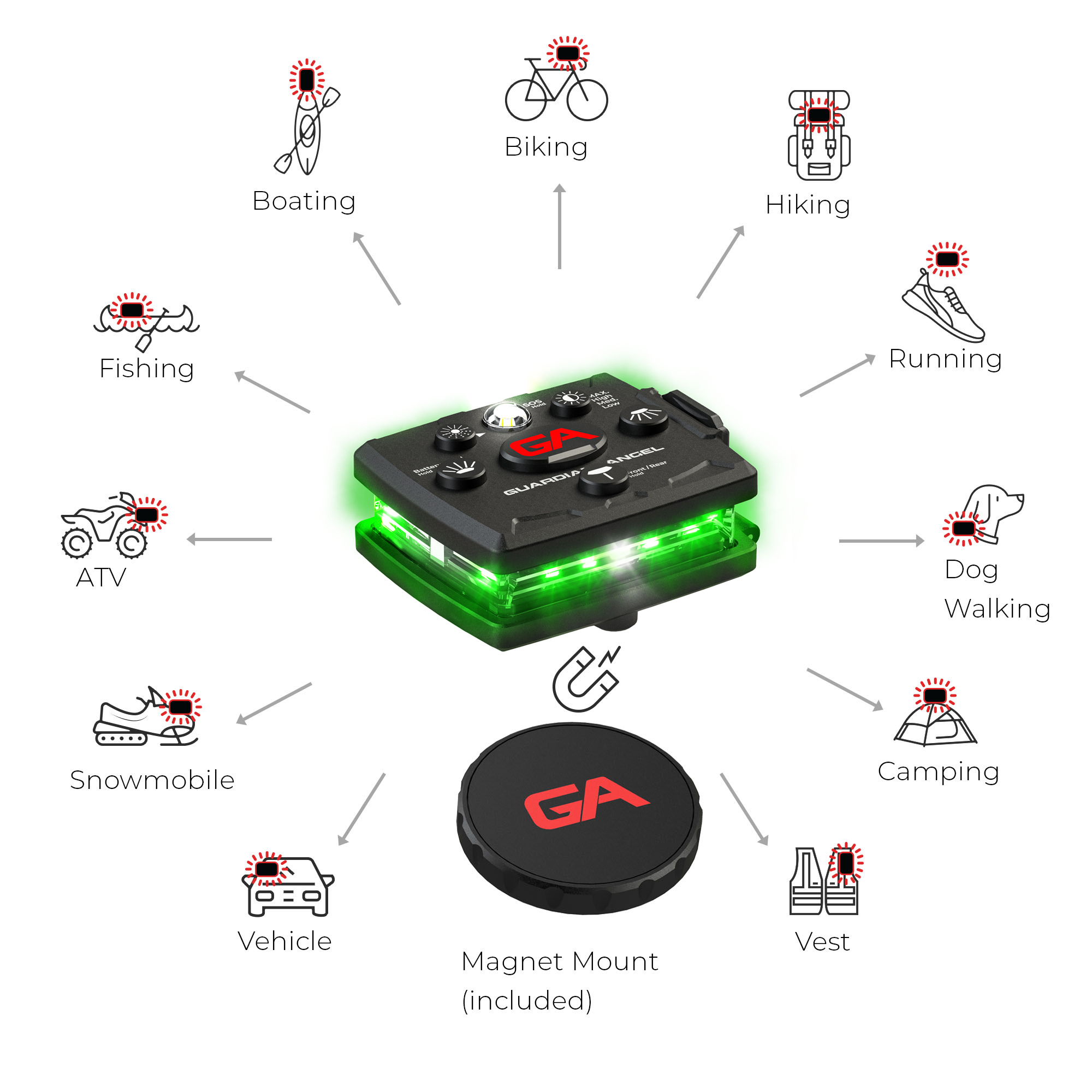 - Patented built-in Magnet Mounting System works with ALL Guardian Angel mounts