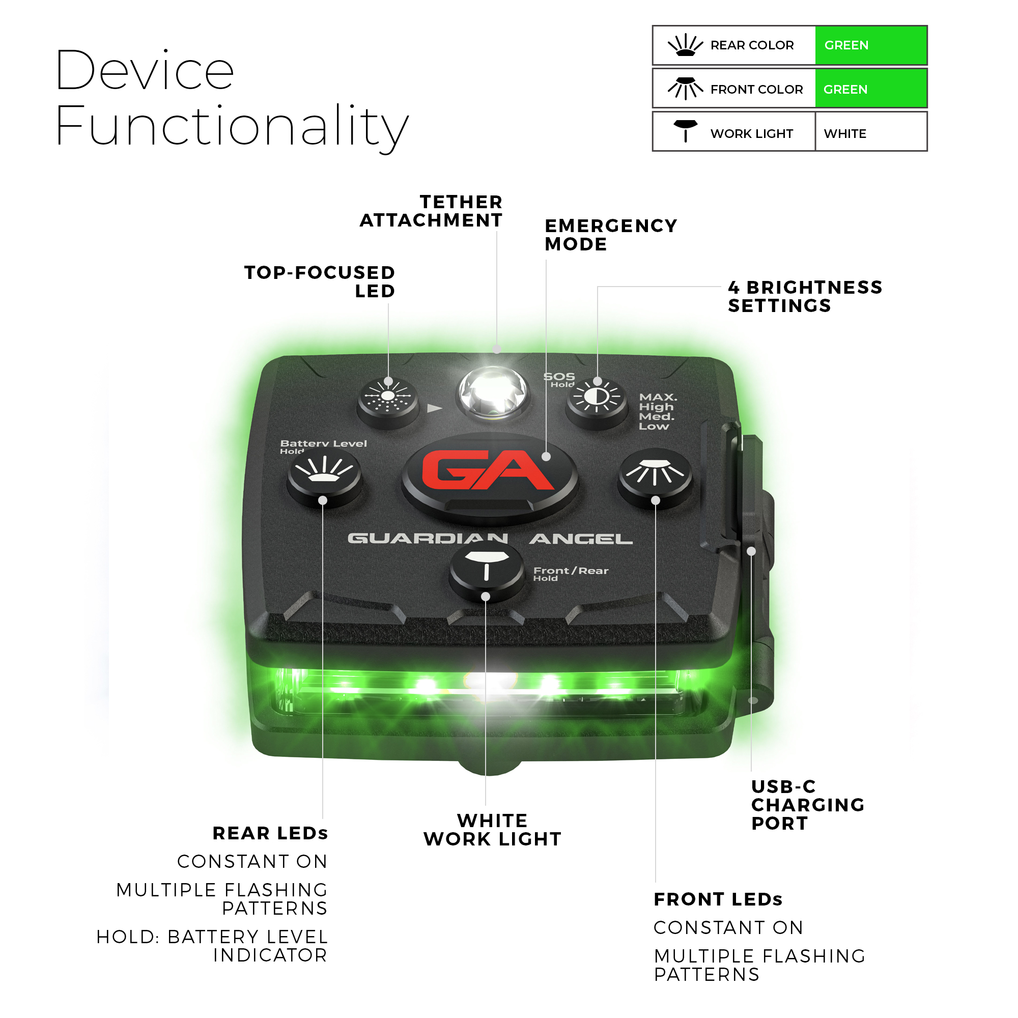 - USB Type-C charging cord included with all lights