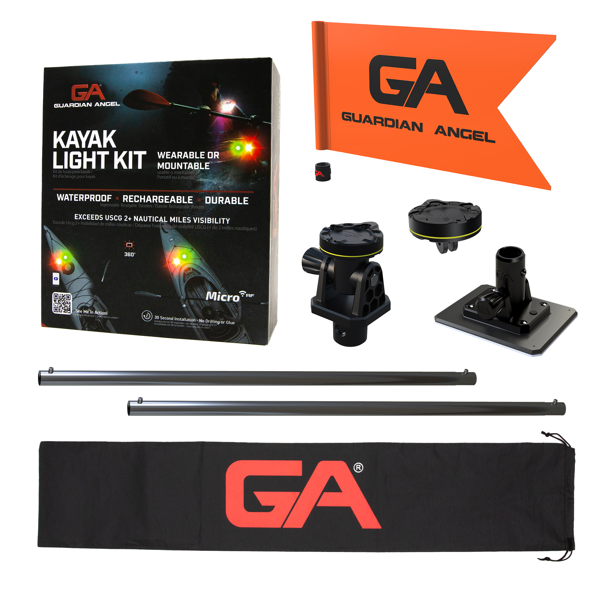 - Draw-string bag suitable for storing poles and additional GA mounts, lights, and accessories.
