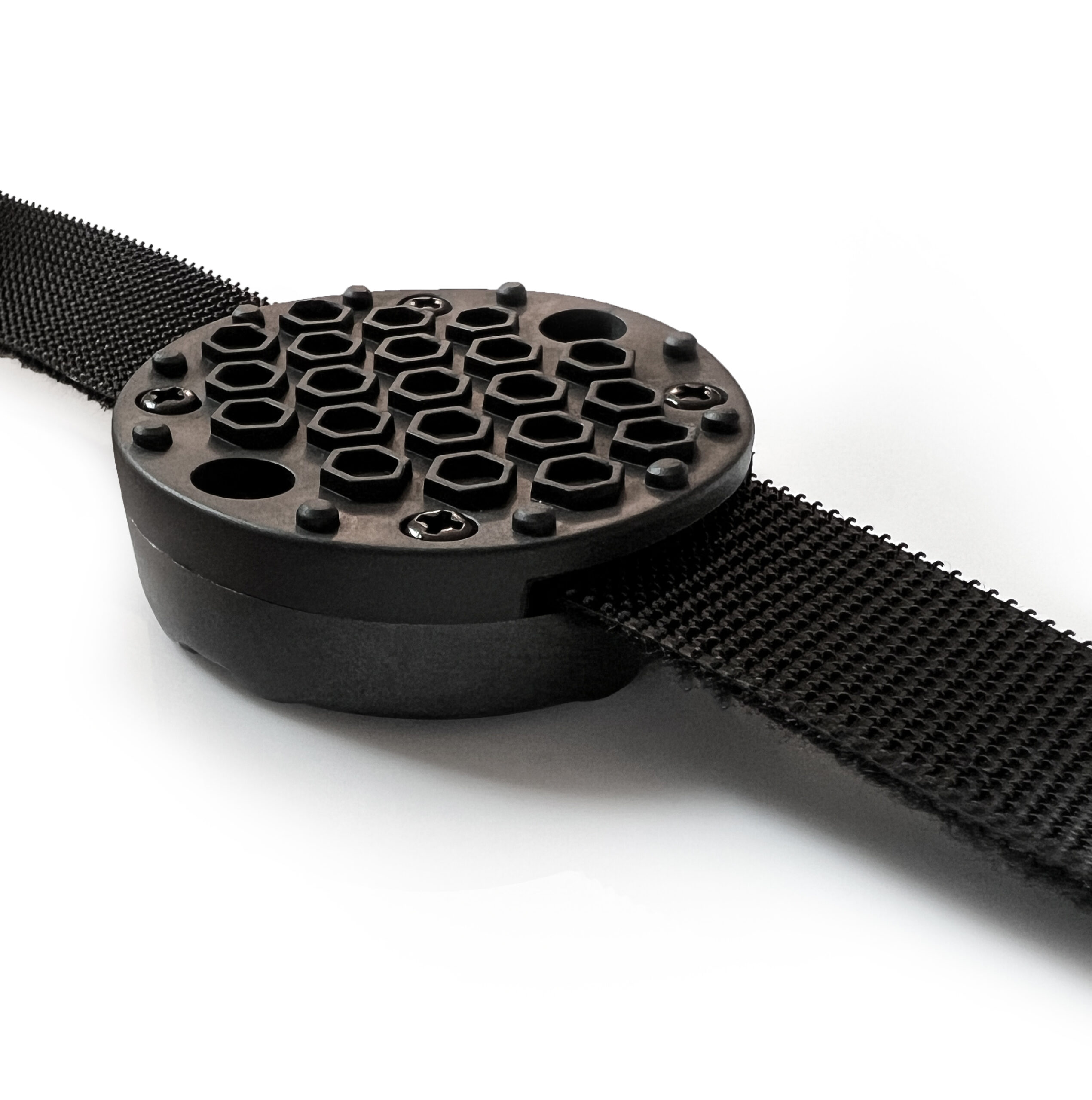 Q: Is there a screw that goes through the bottom and hold the light to the strap?