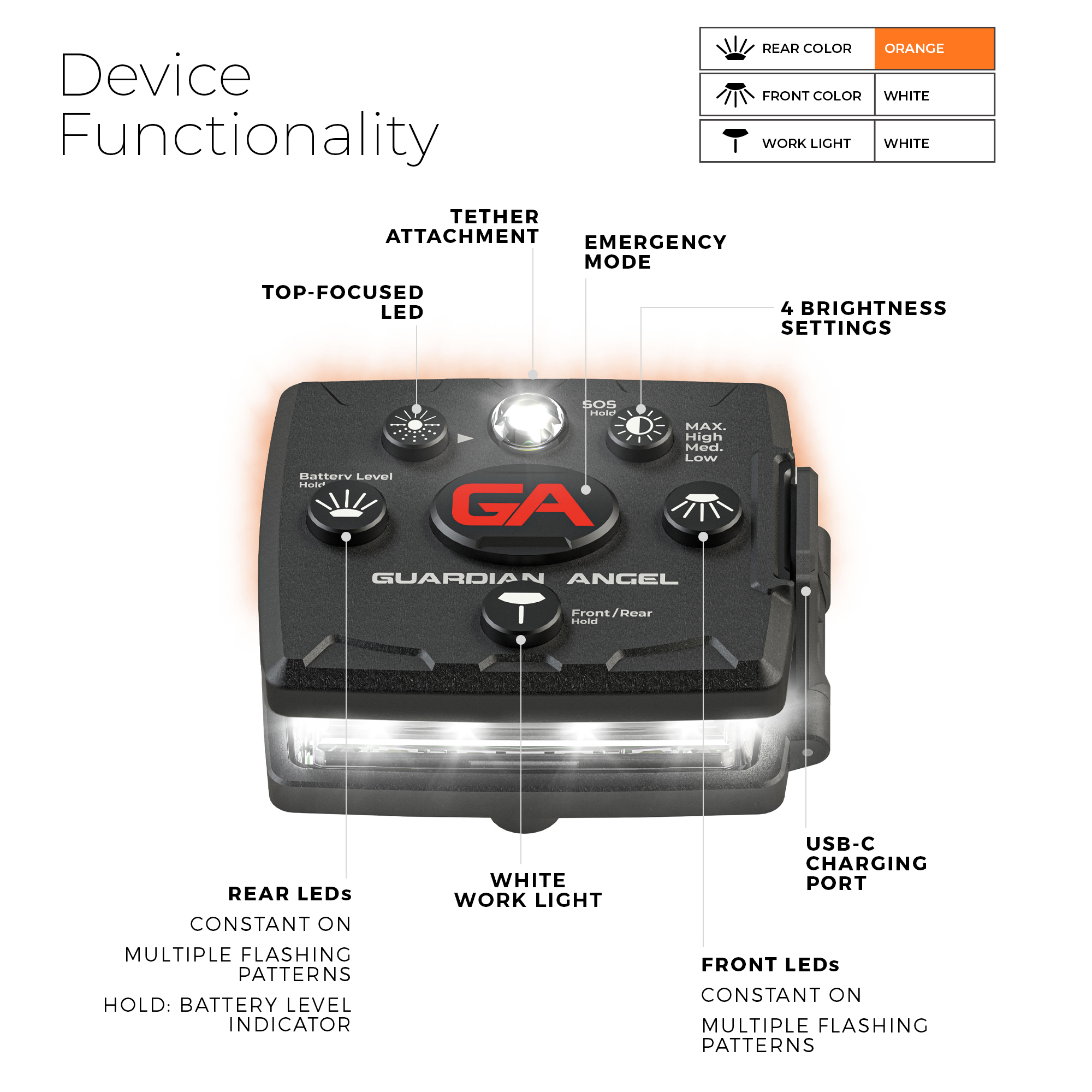 The Micro Series™ white/orange personal safety light is compact but mighty, providing 360° visibility to keep you safe from all sides. Ideal for everyday use, sports and more, see and be seen no matter the activity. Includes standard base mount.