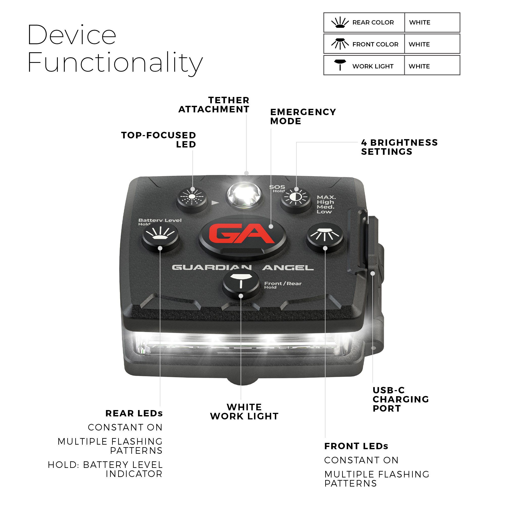 - Accessories – The Micro works with all Guardian Angel mounts and accessories, including many for sports and other activities.