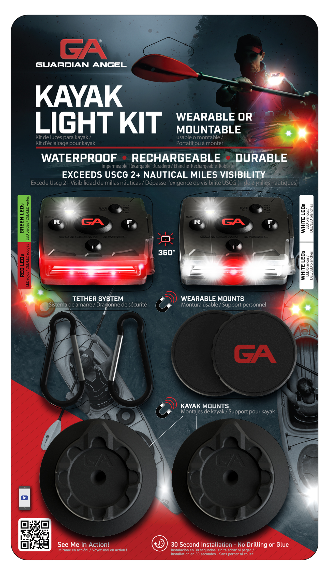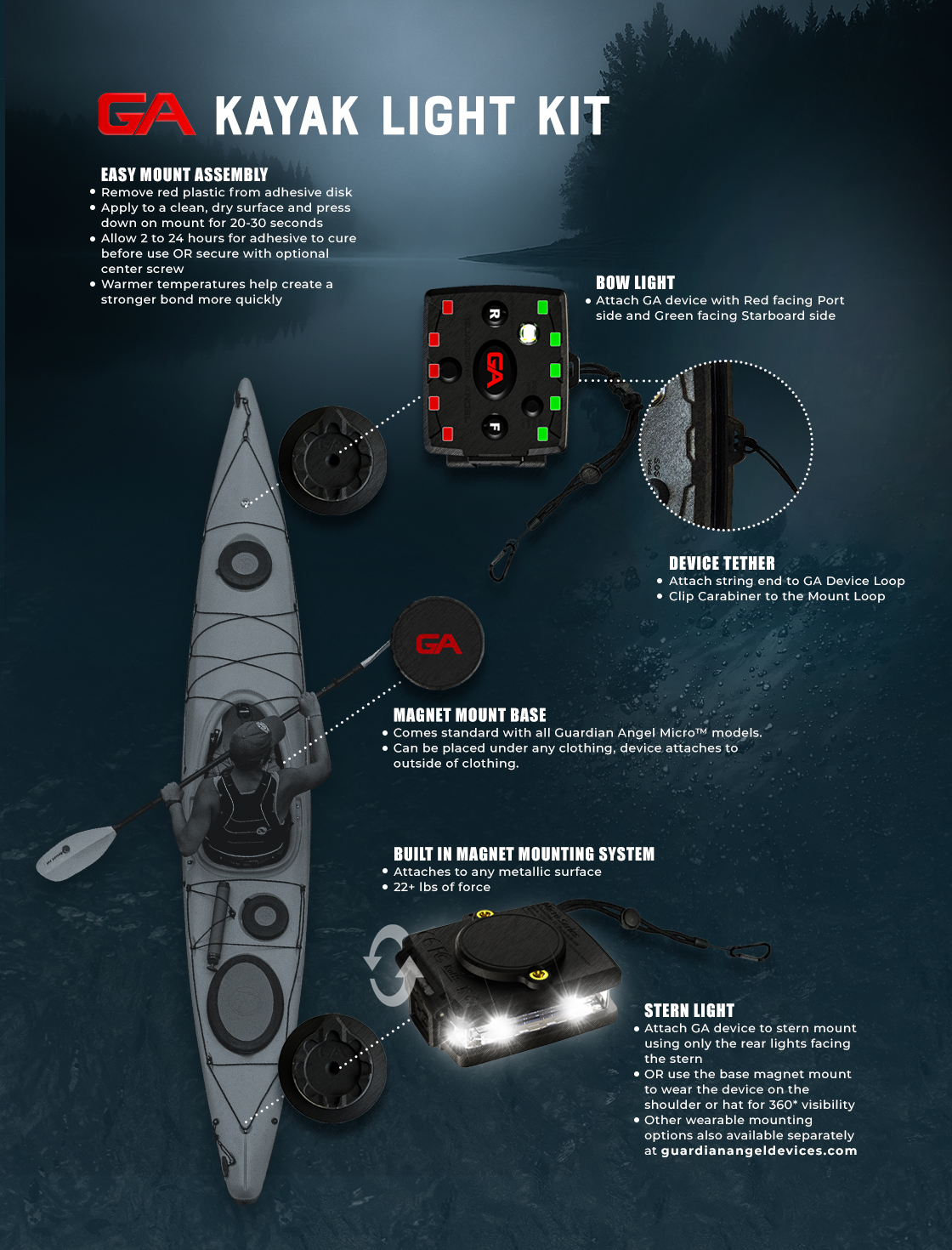 Designed to give you more ways to mount your Guardian Angel lights, this bundle features everything you need to elevate your stern lighting 2 or 4 feet above the deck of your kayak or other vessel.